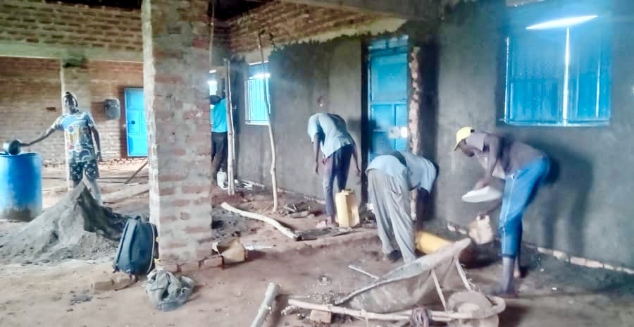The shell of the new school building was already completed in August and the roof was covered. Although the floors and plaster were still missing, the shell was already being used in part—for example, for large meetings or exams. Now the remaining interior work can finally be tackled: Currently, all rooms are being given a solid concrete floor, the walls are being plastered, and finally painted inside and out.